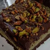 A decadent dessert bar with a chocolate crumb base, layered with smooth pistachio cream, and finished with a rich, silky chocolate ganache. Deeply chocolatey with a subtle nutty sweetness in every bite.