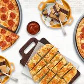 2 Large 1 topping Pizzas, Shareable Cheesy Bread & 2 Brookie Desserts. Feeds 3-5