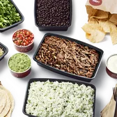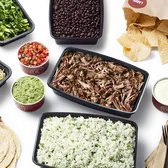 Build your own bowls and tacos for a small group with your choice of meat or sofritas. Build-Your-Own meals include tortilla chips, 8 flour tortillas, rice, beans, 3 dips, and guac or queso. Top things off with even more salsas and dips.