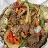 Juicy shaved sirloin steak, butter, Mozzarella cheese, sauteed bell peppers topped with sauteed onions