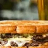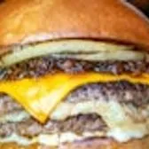 Two Smashed Beef Patties, Swiss & American Cheeses, Caramelized Onions, Mayo & Comeback Sauce on Grilled Rye Bread.