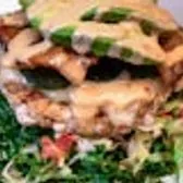 House Greens tossed with Apple Cider Vinaigrette, Tomato & Onion, topped with Ground Chicken Patty, Pepper Jack Cheese, Steakhouse Bacon, Seared Poblano, sliced Avocado & Chipotle Aioli Sauce. This item is gluten friendly. If you have an allergy, please let the kitchen know.