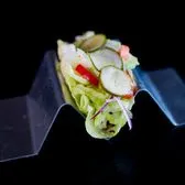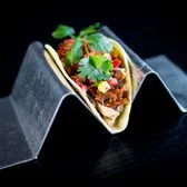 Grilled salmon* , napa slaw, citrus lime crema, pickled fresnos, roasted corn pico (contains cilantro), avocado crema, micro cilantro, corn tortilla | 220 cal. *Cooked to order; these items may be served raw or undercooked. Consuming raw or undercooked meats, poultry, seafood, shellfish, or eggs may increase your risk of foodborne illness, especially if you have certain medical conditions. Ingredients are gluten free. However, the ingredients are cooked in the same area as items that may contain gluten.