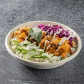 crisp tenders or rotisserie chicken, tikka sauce, raita crema, red cabbage, cucumber, Thai basil, basmati rice