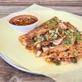 Three corn tortillas packed with smoky brisket and melty cheese, topped with fresh cilantro and white onion. Served with rich consommé on the side for dipping.