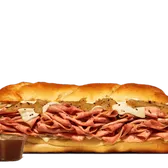 Slow roasted, thinly sliced roast beef topped with Swiss cheese, and giardiniera served on a warm sub roll with au jus for dipping.