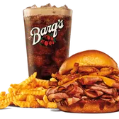Includes smoked brisket, natural cheddar cheese, onion strings, smokey BBQ sauce, brioche bun.