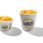 We take mac & cheese, sprinkle shredded cheddar cheese on top, then bake it to golden perfection. A fork never had it so good.