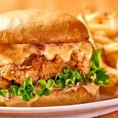 Crispy, hand-battered chicken breast, lettuce, Texas spread, potato bun.