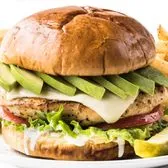 Grilled chicken breast, avocado, pepper jack cheese, lettuce, tomato, Texas spread, potato bun.