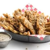 Crispy hand-battered steak fingers.