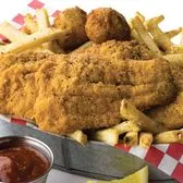 Crispy hand-battered white fish fillets and shrimp, jalapeño hushpuppies.