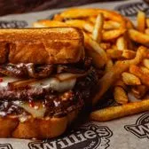 A half pound patty with two slices of Monterey Jack cheese, grilled onions, thousand island, and served on Texas Toast. Choice of one side.