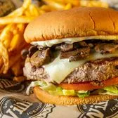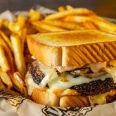 A half pound patty with two slices of Monterey Jack cheese, grilled onions, thousand island, and served on Texas Toast. Choice of one side.