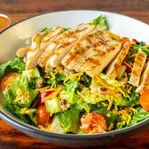 Grilled chicken, romaine lettuce, diced red bell peppers, black-eyed peas, diced tomatoes, & cucumbers, and shredded cheese. Served with Citrus Vinaigrette.