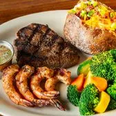 Top sirloin 8 oz grilled to order with four shrimp and served with choice of two sides.