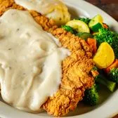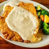 Country fried steak smothered in cream gravy and served with choice of two sides.