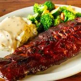 Our delicious signature ribs smothered in BBQ sauce and served with choice of two sides.