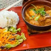 Thick cut pork belly & boiled egg braised in coconut juice, fish sauce, garlic & onions. Served with steamed rice & mixed salad.