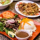 USDA Choice angus beef tenderloin wok-seared and "shaken" with white & spring onion in house red wine garlic sauce. Served with spring mix, tomato, cucumber, traditional Vietnamese lime juice dressing and vermicelli or steamed rice.