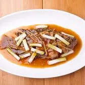 Pot-Roasted whole live tilapia with scallions, garlic, and gingers in chef’s special scallion brown sauce.