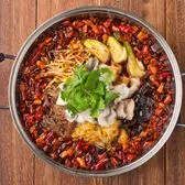Sliced live tilapia braised in chef’s special spicy broth, poured over steamed cauliflower, napa cabbage, and sweet potato vermicelli, finished with boiling red chili oil splashed over dry red chilis and whole Sichuan peppercorns on top.