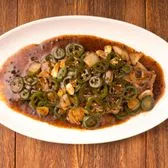 Pot roasted whole live tilapia topped with sautéed jalapeño peppers, white onions, and fermented black bean sauce.
