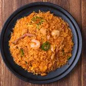 Spicy fried rice of beef, pork, shrimps, egg, Sichuan fermented broad bean paste, and red chili powder.
