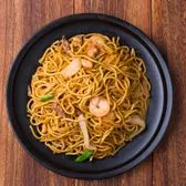 Spicy chow mein of beef, pork, shrimps, egg, Sichuan fermented broad bean paste, and red chili powder.