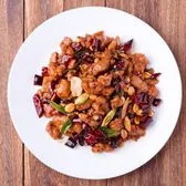 Dark meat chicken sautéed with roasted peanuts and scallions, dry red chilies, and whole Sichuan peppercorns in kung pao sauce