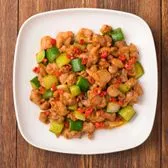 Dark meat chicken sautéed with fresh celeries, cucumbers, and pickled peppers and ginger in fermented broad bean sauce