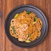 Sautéed lotus root in the method of your choice: plain, with red chilis, or sweet and sour