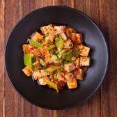 Soft tofu cubes braised to perfection with fresh leeks in mala bean curd sauce and fermented black bean sauce