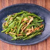 Lightly fried string beans flash fried with bamboo shoots, garlic bits, ground pork, soy sauce, and flavorful yibin preserved vegetables