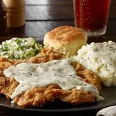 hand-breaded top sirloin, country gravy, two standard sides, scratch cheddar biscuit (gravy is served on the side)