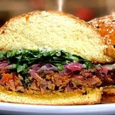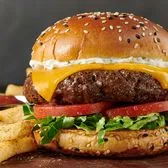 brisket/chuck blend, cheese, fried egg, thick-cut bacon, garden, aioli, standard side (sesame or pretzel bun)