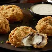 jumbo mushroom caps, herb + garlic cream cheese, horseradish sauce