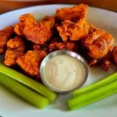 10 buffalo, hot buffalo, cajun dry rub or garlic lemon pepper dry rub (buttermilk ranch or creamy bleu cheese)