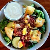 grilled, blackened or fried chicken, fresh greens, cheddar, avocado, bacon, carrot, egg, cucumber, tomato, house made croutons, dressing (salad dressing served on the side)