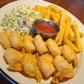 large hand-breaded or grilled shrimp, two standard sides, cocktail sauce