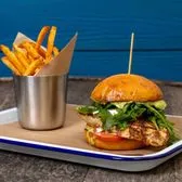 Goat cheese, arugula, tomato, pesto aioli served with your choice of side. We recommend fries