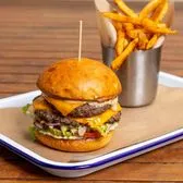 Two 1/4-pound patties, Worcestershire aioli, thick cut bacon, lettuce, tomato, onion and pickles with your choice of side. We recommend Fries.