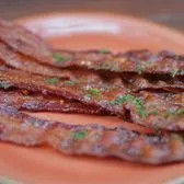 bacon baked with brown sugar, crushed red pepper chili flakes, black pepper [250 cal]