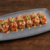 sashimi grade tuna poke tossed with spicy garlic crunch atop crispy sushi rice + guacamole, drizzled with housemade umami sauce, topped with fresh jalapeno and furikake [1240 cal]