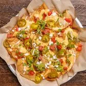 Whoa, Nellie Mexican-Style Lager cheese sauce, guacamole, tomatoes, pickled jalapeño, tapatío crema, queso blanco, cilantro [1560-1720 cal]