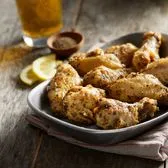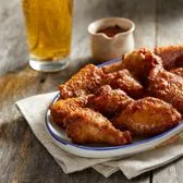 Traditional bone-in wings topped with kettle cooked original BBQ sauce. Each 5pc wings comes with a side of ranch