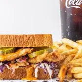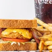 Our signature Texas Fried Chicken Club served with seasoned fries and choice of drink