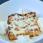 gluten-free bread baked into a cinnamon and vanilla custard and topped with housemade creme anglaise [Contains: Dairy]