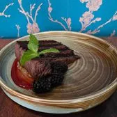 with raspberry sauce