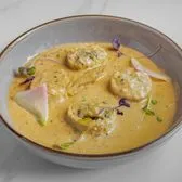 chicken-breast medallions stuffed with spinach, mushrooms, & onions in almond-cashew-pistachio cream sauce